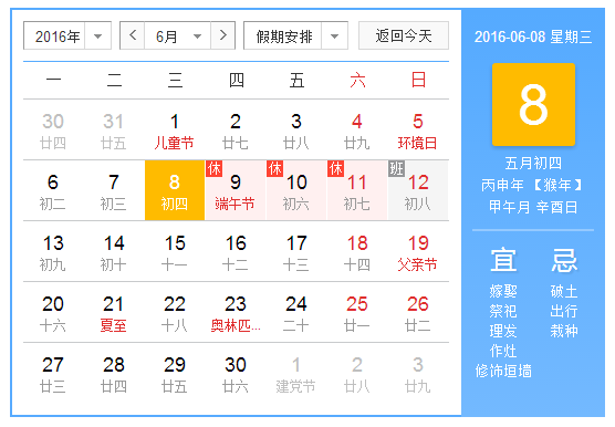 根据国务院办公厅规定,结合公司实际情况,现将2016年端午节放假安排通知如下:2016年6月09日(周四)至2016年6月11日(周六)放假3天,2016年6月12日(周日)正常上班。